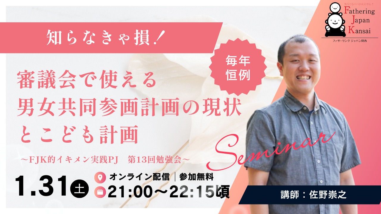 ・とくしまパパサークル「パパCOME ON」メンバー - テーマ:知らなきゃ損!審議会で使える男女共同参画計画の現状とこども計画」 ~毎年恒例。佐野さんの国の動向勉強会~