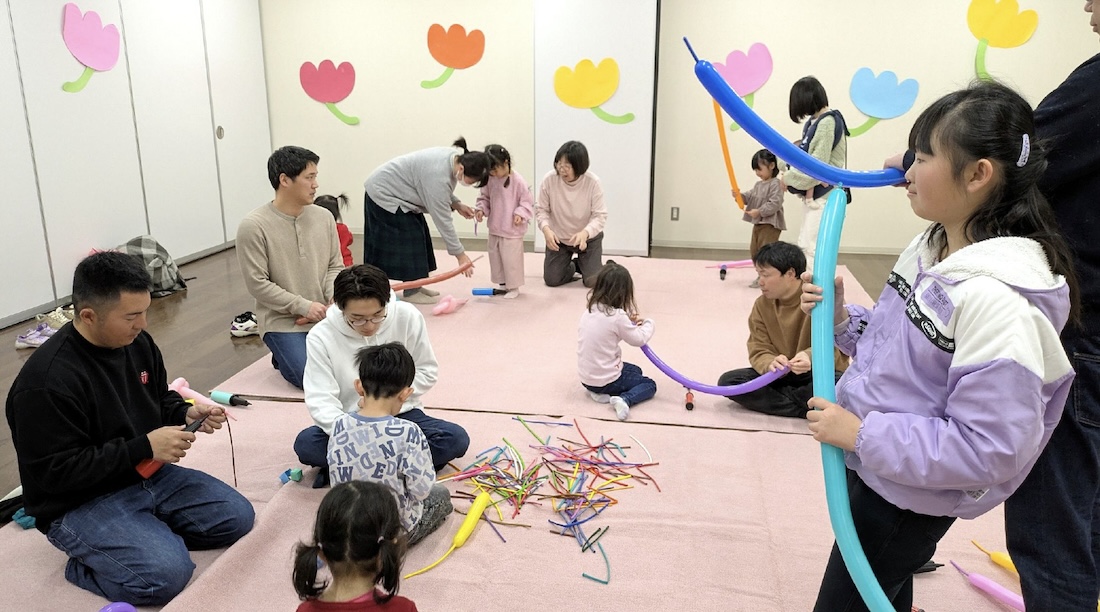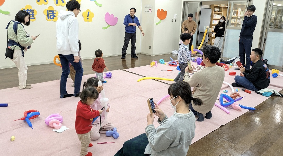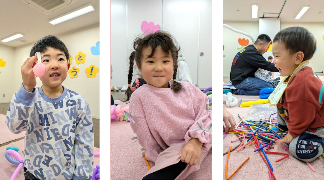 ▼おりがみやバルーンで遊ぶ子どもたちの姿を、パパ・ママが笑顔でカメラに収めていました。とっても楽しい時間が流れ、後片付けまで和やかな雰囲気の中で行うことができました。